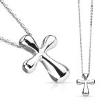 Dámsky náhrdelník, ktorý je dekorovaný príveskom v tvare zaobleného kríža. Prívesok s hladkým a lesklým povrchom je vyrobený z chirurgickej ocele. Retiazka je v striebornom farebnom prevedení.