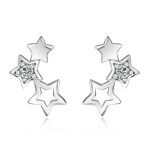 Napichovacie náušnice Hviezdičky v tvare pásu hviezd dekorovaných čírym zirkónom. Náušnice v striebornom farebnom prevedení sú vyrobené zo zliatiny medi a striebra. Povrch náušníc má pokovanie bielym zlatom. Sú detailne vyleštené ručnými prístrojmi, čo Vám zaručí krásny žiarivý lesk, ktorý vydrží veľmi dlho v dokonalom stave. Náušnice majú hladký a lesklý povrch s úpravou proti poškriabaniu.