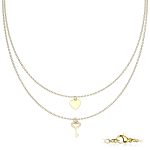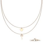 Dvojitý oceľový náhrdelník Srdce a kľúč pozostáva z jemnej retiazky s oválnymi očkami, ktorú zdobí krásny prívesok so symbolmi srdiečka a kľúča.