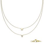 Dvojitý zirkónový oceľový náhrdelník Hviezda pozostáva z jemnej retiazky s oválnymi očkami, ktorú zdobí krásny prívesok v tvare hviezdy a okrúhleho zirkónu.